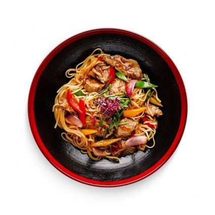 Лапша удон, морський коктейль, лосось, водорості вакаме