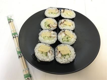 Рис, мідії, огірки, вершковий сир, норі, кунжут
